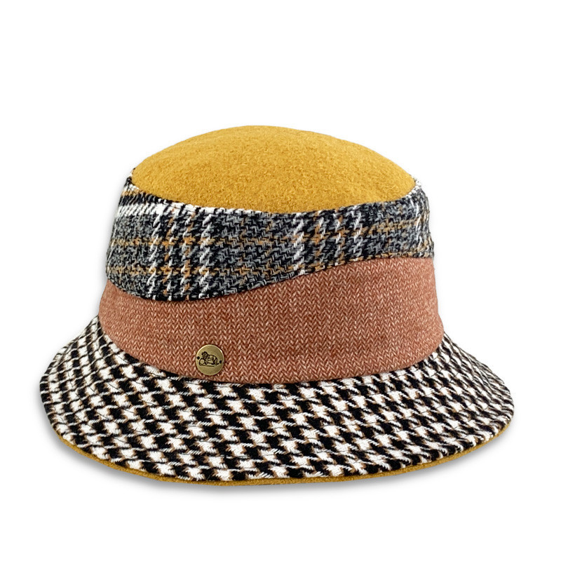 Bonito sombrero de mujer modelo Rubi en color ruggine. Es un sombrero super actual y absoluta tendencia, es de estilo Pork Pie, con un bonito detalle en la cinta que va alrededor de la copa, es un modelo de copa baja y redonda y el ala es corta.