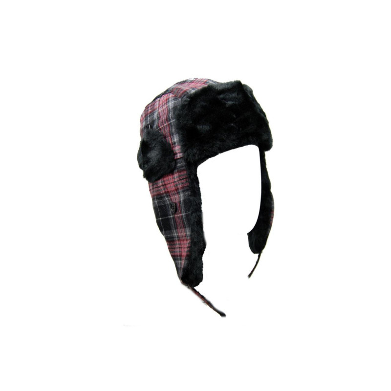 Original sombrero estilo aviador a cuadros.